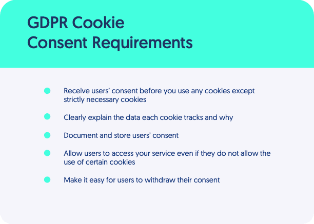 To become GDPR compliant with cookies, you must meet the following requirements: